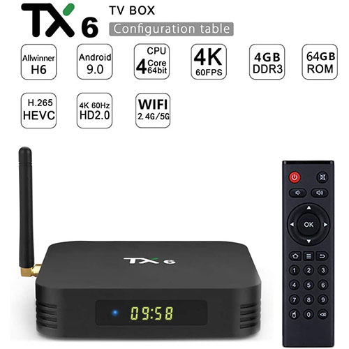 TX6 Android 9.0 4K TV Box with LED Display 4 GB RAM + 64 GB Storage 2.4G + 5G WiFi/LAN/Bluetooth/KODi